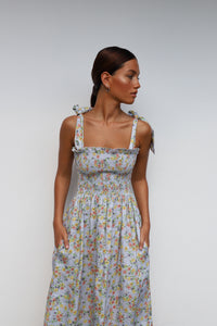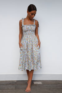 The ultimate summer picnic dress, the Farrah Midi Dress features side pockets, shirred waist and bust, and adjustable tie shoulder straps. Simply pack your straw bag, hat, and slides and enjoy the warm sunshine.