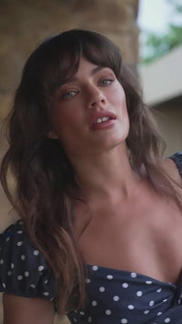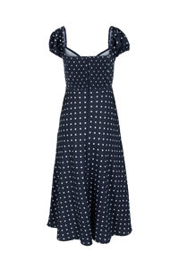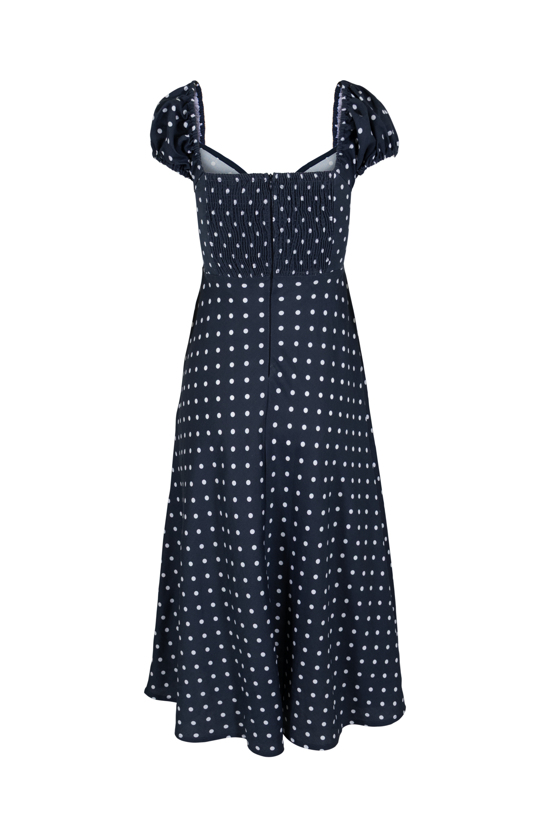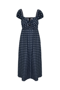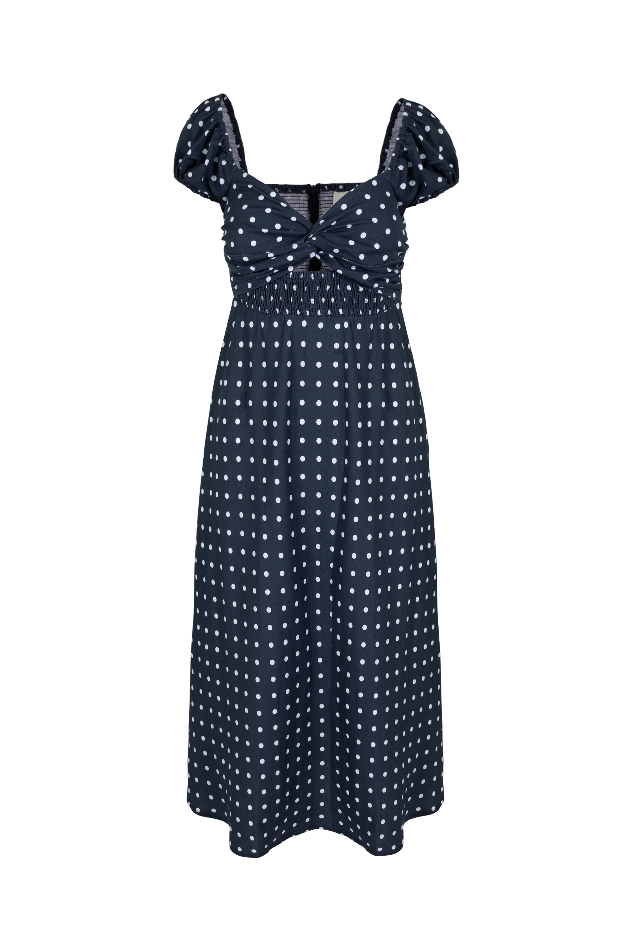 A charming midi dress with a romantic twist-front bust and shirred back panel, offering a stylish and comfortable fit perfect for picnics and brunching with friends.