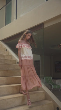 Our Lily Midi Top can be worn on or off the shoulder and features a frill detail along the neckline for an elevated summer staple.