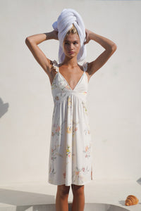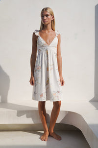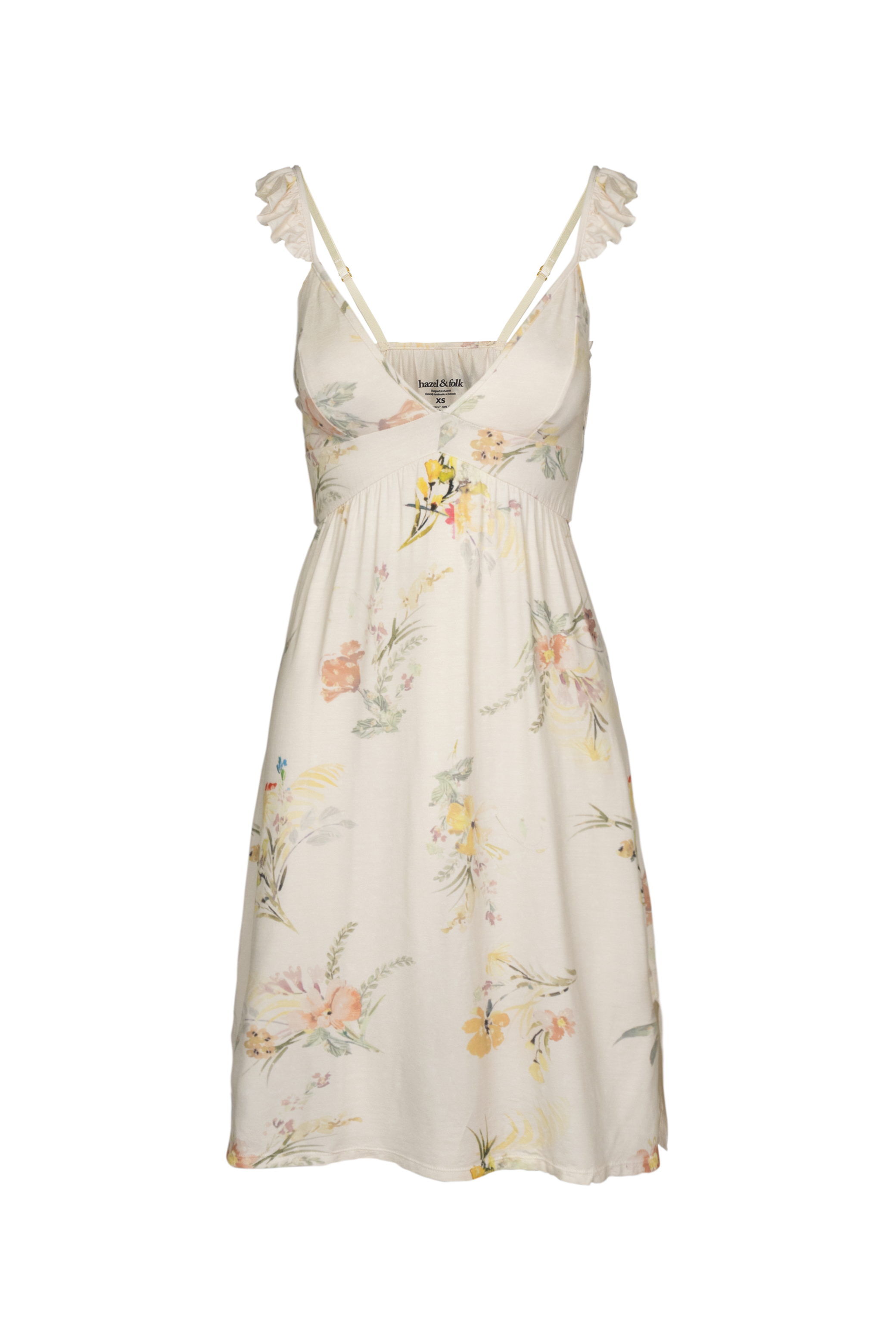 The Sydney Slip Dress features a flattering plunging neckline paired with delicate frill detailing on the sleeves for a feminine touch. Crafted from soft and sustainable LENZING™ ECOVERO™ fabrication with stretch.