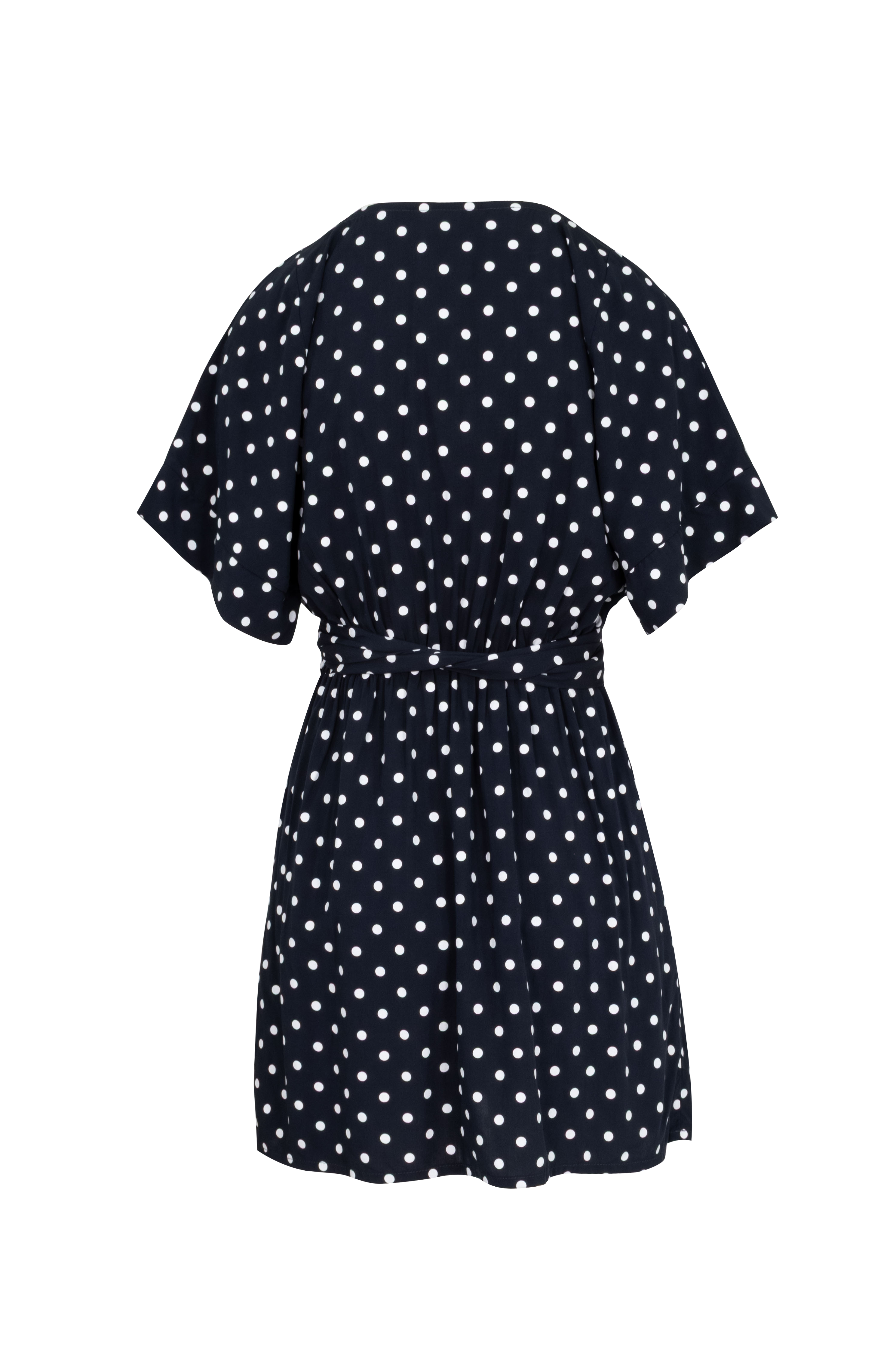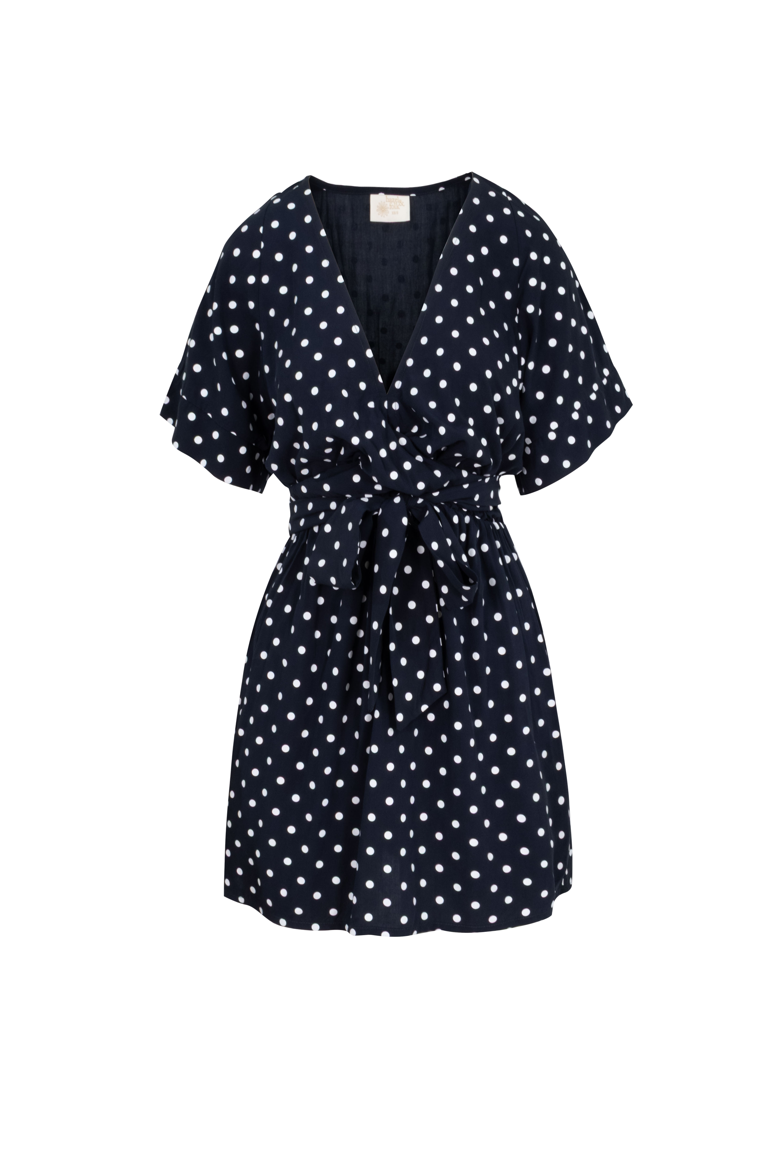 This piece has been crafted from sustainable 100%  LENZING™ ECOVERO™ Viscose fabric and eco printed with globally compliant OEKO-TEX® ECO PASSPORT inks. As featured here in our exclusive Midnight Polka Dot print.
